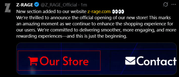 "I'm very happy to announce that we have officially obtained z-rage.com as our own domain! 🎉